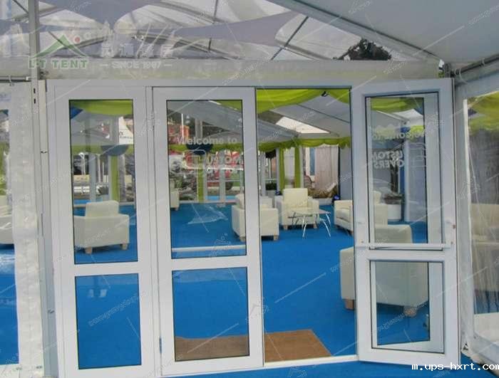 篷房玻璃门是玻璃篷房的配套设施,篷房玻璃门结实,厚重,更加的牢固,玻璃篷房搭配篷房玻璃门使用更加的协调。